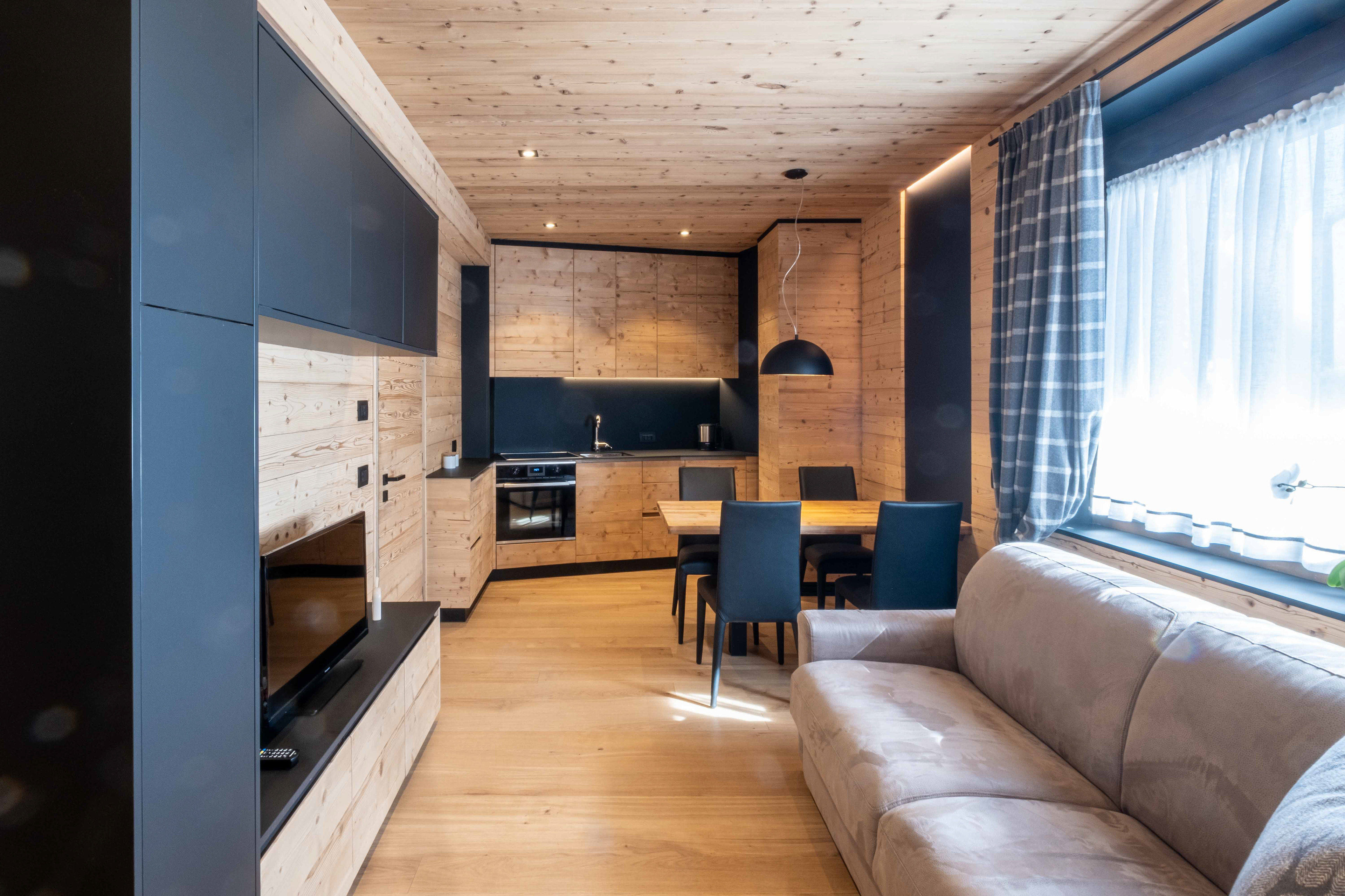 Recently renovated one-bedroom apartment located in Corvara in Badia. A perfect blend of modern design and Alpine charm that provide a comfortable and stylish retreat in the heart of the Dolomites.